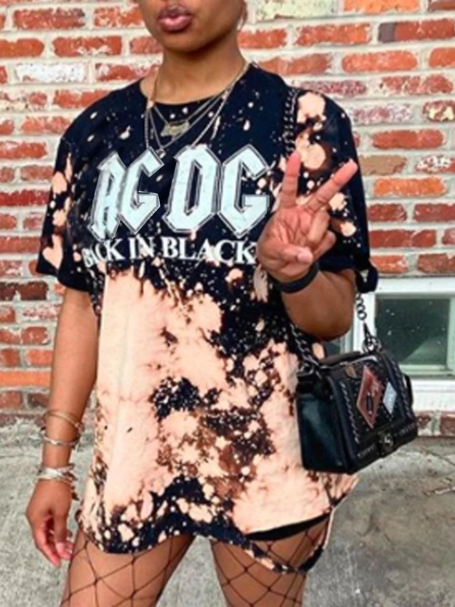 Casual print loose oversize short sleeve Tee