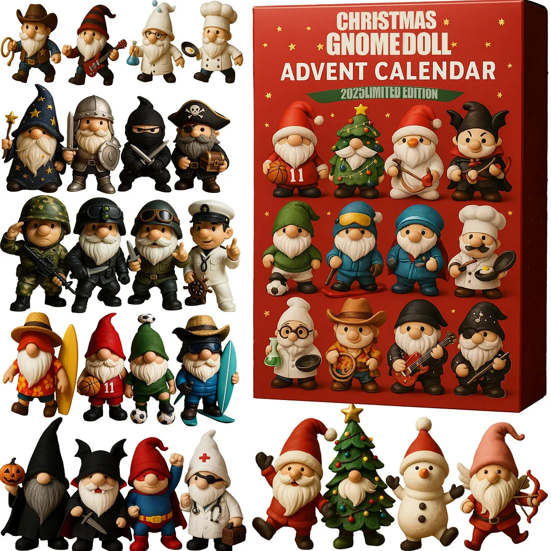 🎄Unwrap the Magic of Christmas with Gnome SurprisesCelebrate the holidays with the Christmas Gnome Doll Advent Calendar 2025! Behind every door, discover a whimsical gnome in a different outfit — from chefs and soldiers to wizards and Santas.✨ 24 Days of Joy and ImaginationEach gnome is crafted with charm and personality, bringing laughter and warmth to your countdown. Whether it’s a surfing gnome, a Christmas tree gnome, or even a superhero gnome, every day reveals a new festive delight.🍷🎁 Perfect Gift for Families & CollectorsIdeal for kids, adults, and gnome lovers alike, this calendar adds magic to your holiday season. Display them, collect them, or gift them — it’s the ultimate way to spread Christmas cheer in 2025!
