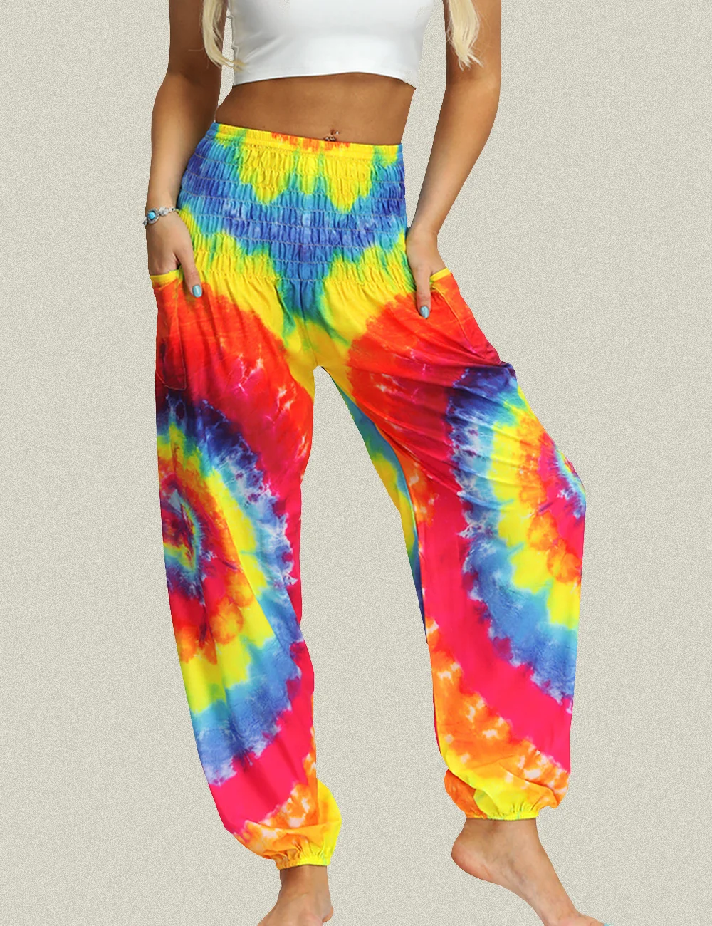 Design: Ornate and Ethnic Prints, Bright and Vibrant Colors, Boho Style. Comfortable Elastic Smocked Waist and Elastic Ankles. Shirred high waist tummy control designed is a nice way to cover your midriff, make you look thinner. Two side pockets design.