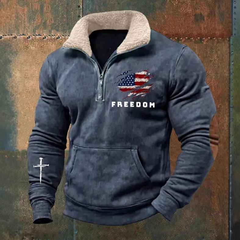 Men's Casual Retro American Freedom Print Stand Collar Long Sleeve Sweatshirt