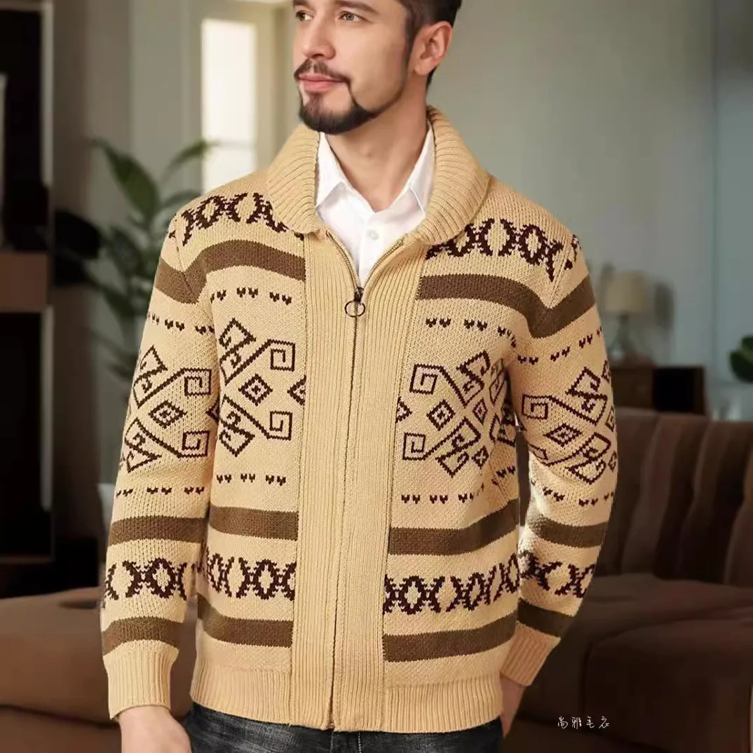 Men's Vintage Pattern Slim Fit Zipper Knitted Cardigan Sweater